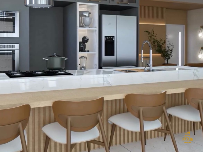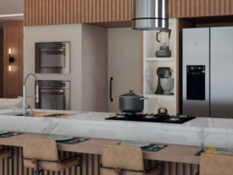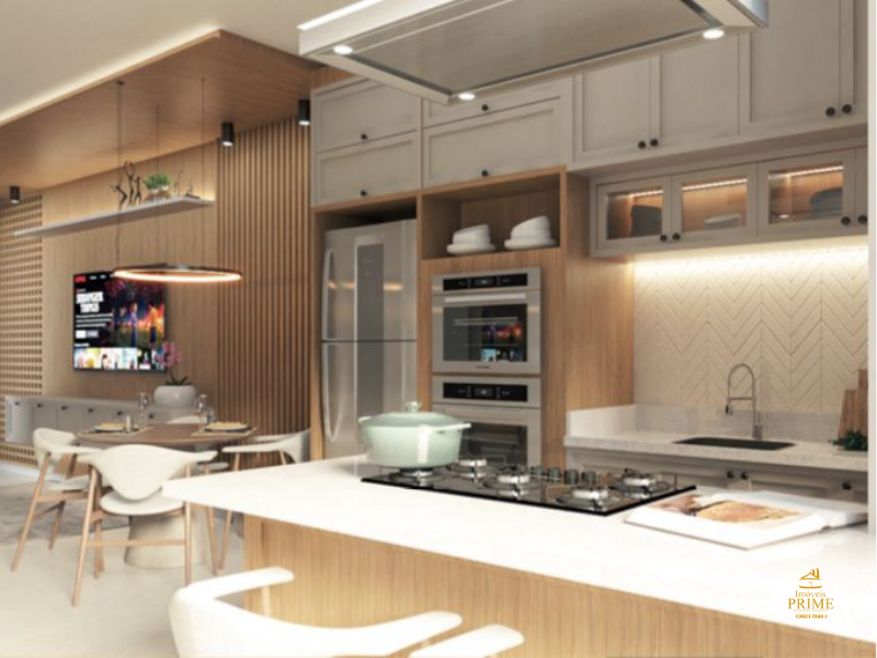 Apartamentos de 131,40 m² com de 3 dormitórios (sendo uma suíte com closet), living com cozinha, sala de estar e sala de jantar em ambiente aberto e integrado, área de serviço, sacada com churrasqueira, banheiro social, lavabo e uma vaga de garagem.