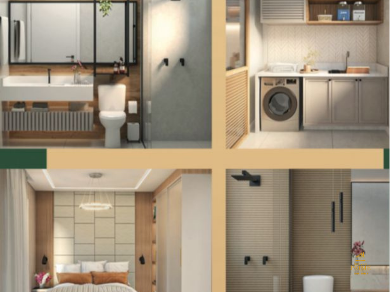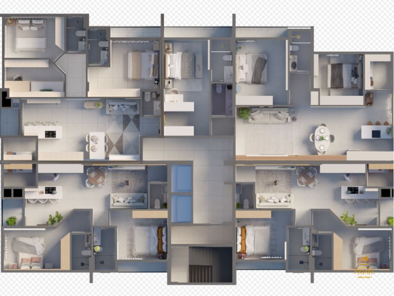O acabamento de todo empreendimento será com um piso perfeito, em porcelanato, teto rebaixado em gesso liso, pontos estratégicos de água quente pro seu conforto em todas torneira e chuveiros e rede de ar condicionado Split no living e dormitórios.