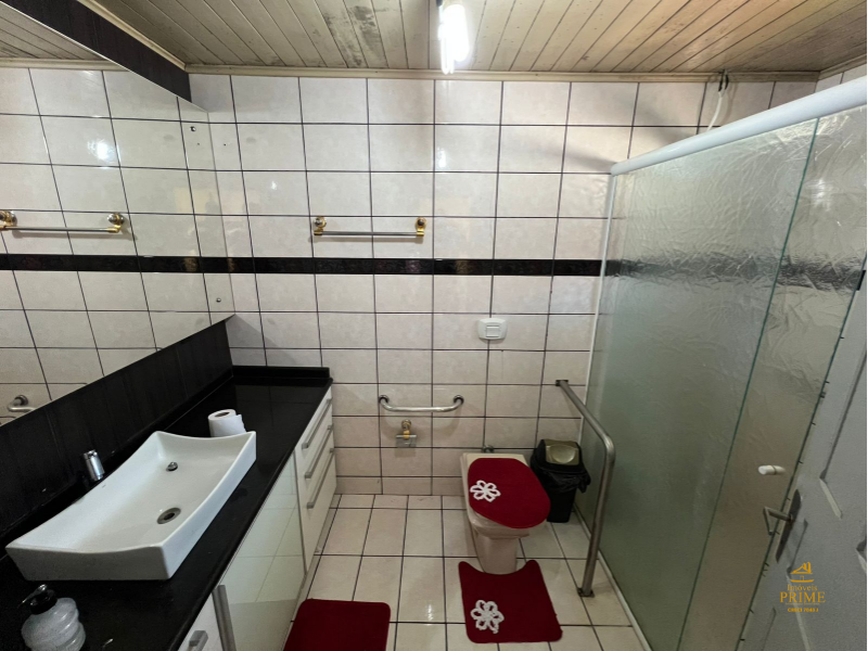 1º Pavimento: 3 dormitórios (sendo uma suíte), cozinha, sala de estar, sala de jantar, sala de TV, 2 banheiros sociais, área de festas, área de serviço, tendo aproximadamente 183 m²